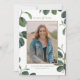 Convide familiares e amigos para sua festa de formatura com este convite de graduação botânica 2023, que é personalizável. Apresenta folhas de aquarela sobre fundo branco. Personalize este convite para a graduação boho adicionando uma foto, um nome, uma escola e outros detalhes. Este convite para a graduação de fotos está disponível em outro estoque de papelão.