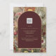 Lindo artigo de casamento de arte botânica com burgundy, flores de terracotta e arco.