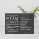 Um elegante convite de festas de aposentadoria, com uma tipografia atraente no estilo vintage e um fundo de chalkboard.
