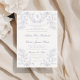 Vintage elegante convite para casamento floral da chinoiserie com uma cinza de arte rupestre de design rustica de linha suave com um monograma e caligrafia elegante.