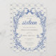 Esta imagem é um convite de aniversário ao estilo vintage lindamente trabalhado, com ilustrações elegantes, desenhadas à mão, florais e arcos em azul suave, num fundo creme. A estrutura central é uma terra ornamentado oval de flores e folhas selvagens, ponteada e amontoada por arcos charmosos, que dá à design uma delicada e clássica reminiscência da antiga papa de papelaria francesa ou de padrões de madeira. O que a torna verdadeiramente especial é a mistura de elegância vintage e calor sentimental. É mais do que apenas um convite — ele dá o tom para uma comemoração carinhosamente planejada, insinuando em festas de chá, pastéis macios, vestidos de herança, e memórias corajosas no fazer.