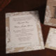 O convite do estilo de vintage com um design de renda floral e a aparência de burlap. Elegante e romântico, este convite de casamento pode ser personalizado para se adequar ao seu estilo. Todas as partes deste design são impressas, não há nenhuma braçadeira real conectada.