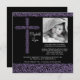 Comece o seu evento com o nosso batismo de fotografia de bebê elegante / convite batizante. O convite apresenta um conjunto de cruzes roxas vintage num terreno preto com bandas de rolagem vintage. Fácil de personalizar, basta adicionar suas informações sobre fotos e eventos e você está pronto para ir.