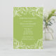 Elegante e inspirador, este design apresenta um belo damask vintage, retratado em verde e branco para uma aparência clássica. Perfeito para um convite para festa de noivado ou um anúncio de noivado! Apenas personalize com suas informações e você está pronto para ir! Os itens correspondentes incluem convite para chás de panela, cartões de agradecimento, selos e muito mais em nossa loja!