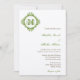Sua personalidade única vai brilhar com esses convites de casamento elegantes e elegantes. O cartão apresenta a letra do seu monograma num tipo em dificuldades, definido num quadro circular com folhas. Os nomes dos casais são realçados em scripts de uma maneira chic decay. Esses convites de 5" x 7" são placas planas. Algumas letras alfabéticas podem ocupar mais ou menos espaço dentro do quadro do monograma. Você pode ajustar a posição das letras iniciais clicando no botão "Personalizar!".