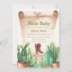 Chá de fraldas de cacto de aquarela, chá de fraldas de vintage, design com botas de aquarela fofinha, cacto do deserto de aquarela, arco e texto " Hello Baby". este design perfeito para o chá de fraldas de bebês e meninas, design de chá de fraldas neutro em sexo. você pode personalizar seu próprio texto através de " personalize este modelo".