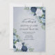 Um elegante design de aquarela vintage de grandes rosas em tons deslumbrantes de marinho azul, branco e rico sobre um fundo azul empoeirado. A parte traseira da placa apresenta um pequeno buquê no centro. Você pode personalizar com seus detalhes de casamento clicando no link personalizar. Isto é parte de uma suite de casamento clássica que pode ser totalmente personalizada.