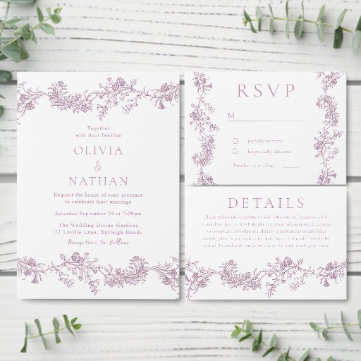 Vintage Elegante Blush Dusty Rosa Wreath Convite de Casamento Ver coleção correspondente em nossa Loja de Nest e Niche