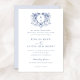 Vintage Elegante Leafy Blue Crest Convite para Casamento. Convite De Casamento De Palavras Tradicional. Convite De Casamento De Caligrafia De Script Elegante. Vintage Desenhando Mão Frame Antiquado Com Detalhes Florais