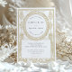Este belo convite de casamento ao estilo vintage apresenta um ornamentado de design de ouro macio laurel em , enquadrando os detalhes do casamento de uma forma sofisticada e eterno. Floreados, incluindo escroques regais e motivos detalhados, enfeitam a borda, criando um aspecto luxuoso e elegante. A tipografia serif clássica complementa os sotaques dourados, enquanto o fundo branco mantém o design fresco e limpo. A parte de trás do cartão é adornada com um monograma minimalista e elementos decorativos correspondentes, reforçando o refinado apelo do cartão. Ideal para casamentos formais ou tradicionais, esse convite é perfeito para casais que apreciam charme vintage com um toque moderno, obrigados à sua combinação de tons de ouro, branco e creme.