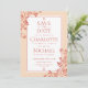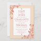 Enquadrado em teracotta victorian floral lace, personalize seus nomes e salve os detalhes do convite de data no texto chic terracotta. O reverso apresenta um padrão de renda floral vitoriano de terracotta. Projetado por Thisnotme©