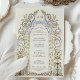 Este belo convite de casamento exumenta um charme de eterno com seu intrincado motivo floral vitoriano. Sombras deliciosas de azul-céu, cor-de-rosa-pincel e verde-oliva entrelaçam com sotaques de ouro e chocolate marrom, criando um jardim encantador de elegância. A design apresenta uma mistura harmoniosa de florais, fitas e folhas de trigo, simbolizando o crescimento e a unidade. Perfeito para um casamento clássico e romântico, este convite é impresso num papel quente e cremoso que adiciona ao seu fascínio vintage. A escrita sofisticada e as fontes serif adicionam um toque de formalidade à ocasião. Convide seus convidados para o seu dia especial com esta bela peça de arte que eles certamente vão tesourar.