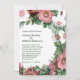 Bonito convite ao casamento floral feito em matte branco, com trabalho de arte de flores cor-de-rosa e brancas, no lado direito. O texto personalizado está centrado no lado esquerdo e pronto para personalizar o seu dia especial.