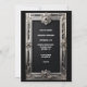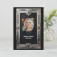Um quadro de estilo de decoração de arte prateada falsa ornamentado tem uma incisão preta na qual aparecem modelos brancos para sua redação personalizada. A frente tem a mesma falsa borda decorativa de prata com estilo vintage com um modelo fotográfico para o homem aposentado ou a fotografia da mulher mais um modelo abaixo da fotografia para o seu nome e os anos de trabalho na empresa. Esta design é adequada a um almoço de negócios de despedida ou a uma festa de aposentadoria.