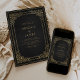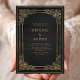 Este elegante convite de casamento apresenta uma imagem de ouro vintage em um fundo afrodescendente em imitação de um antigo cobrir de livro. Personalize o texto dourado com seus nomes e detalhes de casamento. O design de quadro é repetido na parte traseira da placa.