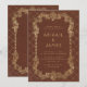 Este elegante convite para o casamento apresenta uma imagem de ouro vintage em ornamentado sobre um fundo angustiado e cor de ferrugem na imitação de um antigo cobrir de livro. Personalize o texto dourado com seus nomes e detalhes de casamento. O lado inverso repete o motivo do quadro.