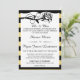 Vintage glam, convite de casamento inspirado na década de 20 em ouro e preto com rosa decorativo.