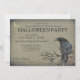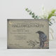 Dê ao seu evento de Halloween o toque certo de assustador com este design de safra. A frente apresenta uma ilustração de uma devastação escura que repousa em um galho de árvore. O design é acentuado com folhas de outono, lua crescente e fundo rústico em tons de oliva e bronzeado. Personalize o texto usando modelos fáceis e fornecidos. O verso é uma cor coordenadora e é acentuado por uma pequena ilustração de uma pena em queda.
