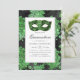 Convite de Quinceanera com uma máscara de mascarada emerald gemstone com um fundo verde cinza úmido brilhante.