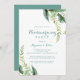 Este convite de festas verde de eucalipto é perfeito para um evento rústico. O design apresenta cor d'água verde pintada manualmente, folhas de marinho e flores bem arrumadas em buquês.