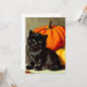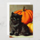 Cartão com um gato preto e abóboras vintage do Halloween! Esta pequena bola de pelo fica adoravelmente ao lado de duas abóboras laranja. Um presente de excelente para festas de Halloween e amantes de gatos!