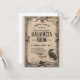 Featuring distressed parchment textures, ornate borders, and a mysterious raven illustration, this design sets the perfect tone for a spooky yet classy Halloween celebration.