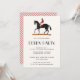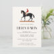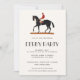Vintage Horse Race Derby Party Jockey Modelo com uma ilustração vintage de um cavalo com seu padrão listrado nas costas. Todos os elementos de texto podem ser alterados para que este design possa ser usado para outros eventos também: convite de casamento equestre clássico, convites de aniversário de festas derby, abertura de celeiro e muito mais. As cores de fundo e texto podem ser alteradas com a ferramenta design!