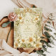 Um elegante design de casamento inspirado na vintage com lírios de marfim arranjados num quadro floral romântico com sotaques de rolagem de ouro ornamentado. A paleta de creme suave e ouro adiciona sofisticação do eterno, perfeita para celebrações clássicas, formais ou inspiradas no jardim