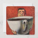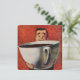 Clique no botão "personalizar" para acessar as ferramentas de design para alterar a cor de fundo e adicionar seu próprio texto personalizado! Muitos estilos de fonte a serem escolhidos! Vintage ilustres bebidas e bebidas design com um sorridente homem com uma enorme xícara de café, chá ou talvez até chocolate quente! Imagem engraçada, bobo e humorística enfatizando nosso caso amoroso com café!