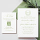 Convites Vintage Monogram Crest White and Green Wedding