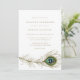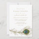 Convide convidados para o seu evento com este convite de casamento personalizável. Ele apresenta uma pena de pavão balnear em um fundo branco. Eles são perfeitos para qualquer tema de casamento ou estação. Itens correspondentes estão disponíveis.