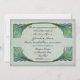 Esta design apresenta um fundo de aparência envelhecida em uma cor de pergaminho com tons verdes com algumas penas de pavão Art Nouveau como borda decorativa. Isto funciona para qualquer estação, formal ou informal.