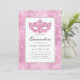 Convite Quinceanera com máscara de mascarada com fundo cintilante e couro com tufo em losango.