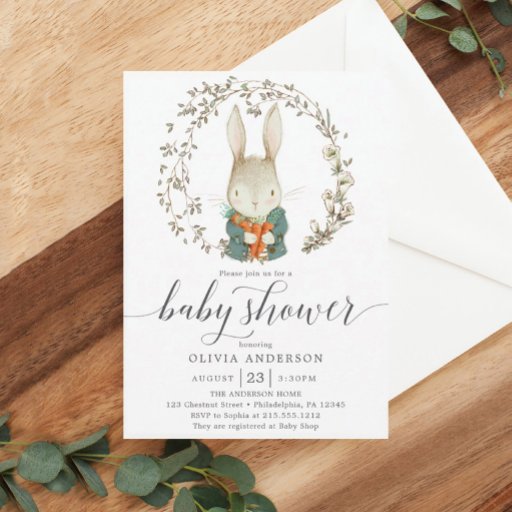 Convites Vintage Rabbit Botânico Gênero do Bebê