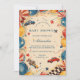 A fun and nostalgic baby shower invitation featuring a retro race car theme in red, blue, and gold tones. The design showcases vintage toy cars, balloons, stars, and confetti on a textured parchment background — perfect for celebrating a baby boy with a playful, old-fashioned twist. Ideal for car lovers and parents who appreciate timeless, whimsical designs.