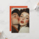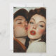 Um retrato de inspiração retrógrada captura o momento de um beijo delicado entre um homem e uma mulher. A iluminação suave e a paleta colorida evocam uma sensação de nostalgia, com a maquiagem marcante da mulher e os olhos fechados do homem a reforçarem o humor romântico.