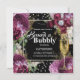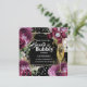 Um belo quadro quadrado é revestido de delicadas rosas de aquarelas em tons de roxo e lavanda de burlões profundos, que formam uma fronteira em torno de modelos brancos e cinzas cintilantes de prata cinzenta e fios de joias. Os cantos têm folhagem macia e delicada e um solteiro de vinho tinto profundo arco com uma camada de diamante aparece no canto direito, acima de um copo de vinho espumante. Este elegante e chique visual francês é ideal para uma chá de panela, festa de aniversário ou comemoração especial do aniversário de casamento. Simplesmente personalize o texto para se adequar à sua ocasião ou evento especial e mude o fundo negro para qualquer uma de suas escolhas.
