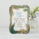 Pavões reais brancos e azuis sobre um fundo Vintage tropical salpicado com penas e folhas de ouro exóticas para este tema do papel de carta de casamento ou como design de decoração