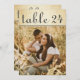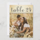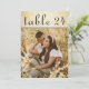 Para personalizar: digite o número da tabela, clique em "alterar" pela foto padrão para carregar sua própria foto e adicione essa placa de número de tabela individual ao seu carrinho de compro. Repita para todos os números de tabela necessários. Texto suave de script preto e design de divisor pontilhado em um fundo que tem uma aparência antiga de marfim/papel antigo.