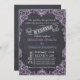 Moldura de folha de rolagem roxa e convite de casamento do quadro de quadros com uma imagem de vintagem roxa lilás de folhas de rolagem em um quadro de cinza de carvão ou fundo de quadro-negro e seu texto em uma faixa branca. Uma abordagem moderna e contemporânea a um tema antigo. Este modelo é parte de um casamento, é totalmente personalizável e pode ser personalizado.