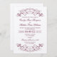 Uma trilha decorativa e floresce, esta elegante vintage inspirou design de convite para casamento. Mário escuro vermelho e prateado. Personalize o texto personalizado para a sua cerimônia e recepção de casamentos.