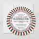 convite de festas de barbeque patriótico na moda Chic com fundo de faixa radial azul, vermelha e tan rústico com tipografia, colocado em um quadro de estrelas azul, vermelha e branca. Sacudir nosso convite para churrasco para ver uma correspondência de volta para um toque especial extra. Perfeito para seu churrasco de verão. 4ª festa, dia de memoria, biscoito de dia de trabalho, churrasco de festa de piscina, reunião de família.