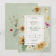 Este design apresenta uma bela imagem de girassóis de cor aquosa macia e outras flores de verão em um fundo verde macio e aflita. É romântico com um toque de safra. Criada pela "Simply Farmhouse Press", faz parte do Vintage Summer Floral Wedding Suite de cartas.