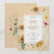 Este design apresenta um belo quadro de girassóis de cor aquosa macia e outras flores de verão em um fundo amarelo-macio em apuros. É romântico com um toque de safra. Criada pela "Simply Farmhouse Press", faz parte do Vintage Summer Floral Wedding Suite de cartas.