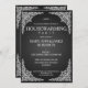 design de Convite de festas de de aquecimento doméstico com Vintage Swirls Motif preto, nome e data personalizados e texto adicional. Imprima a sua família e amigos com este na moda e o design moderno. Totalmente personalizável! Fácil de usar e fácil de personalizar.
