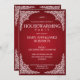 Design Elegante de Convite de festas de Aquecimento Doméstico com Vintage Swirls Motif Vermelho, nome e data personalizados e texto adicional. Imprima a sua família e amigos com esta na moda e a design moderna. Totalmente personalizável! Fácil de usar e fácil de personalizar.