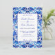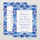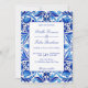 Vintage Talavera Azulejo Mediterrâneo azulejos azuis e brancos todos em um convite para casamento editável para download digital instantâneo de modelo, tudo em um cartão de convite para casamento com detalhes de casamento e QR rsvp no fundo