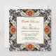 Vintage Talavera Azulejo azulejos marrom azuis mediterrâneos todos em um convite de casamento editável para download digital instantâneo de modelo, todos em um cartão de convite de casamento com detalhes de casamento e QR rsvp no fundo