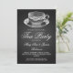 design Elegante de Convite de festas de chá com filme preto de Vintage Tea Cup, nome e data personalizados e texto adicional. Imprima a sua família e amigos com este na moda e o design moderno. Totalmente personalizável! Fácil de usar e fácil de personalizar.
