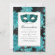 Convites Vintage Teal Mascarada Damask Quinceañera